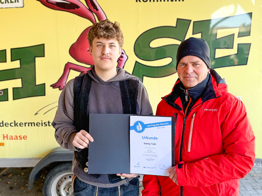 „Aus meiner Klasse gingen nur zwei Schüler ins Handwerk“, sagt Kenny Türk. „Einer davon war ich. Für mich wäre auch nie etwas anderes infrage gekommen.“ Wenn Kenny Türk, Dachdeckerlehrling im 3. Lehrjahr, über seinen Beruf spricht, schwingt Stolz mit.