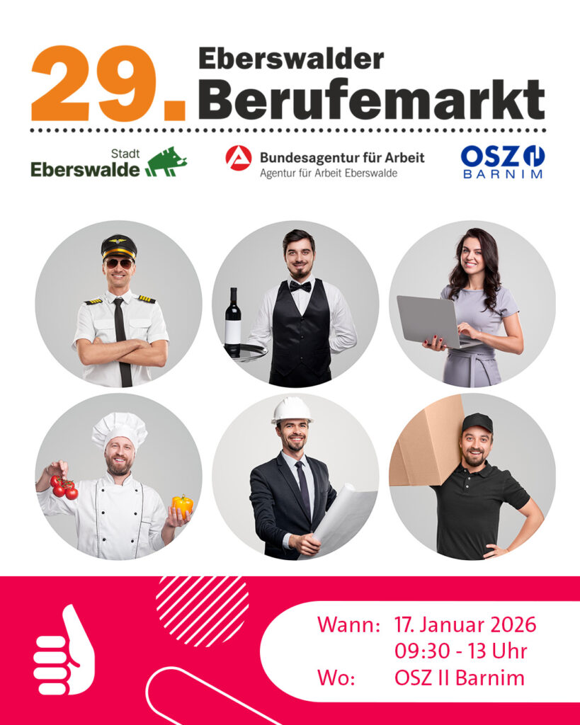 Veranstalter des Eberswalder Berufemarktes sind das Oberstufenzentrum II Barnim, die Agentur für Arbeit Eberswalde und das Jobcenter Barnim mit der Jugendberufsagentur Barnim und die Stadt Eberswalde mit ihrem Bürgermeister und Schirmherrn der Messe, Götz Herrmann.
